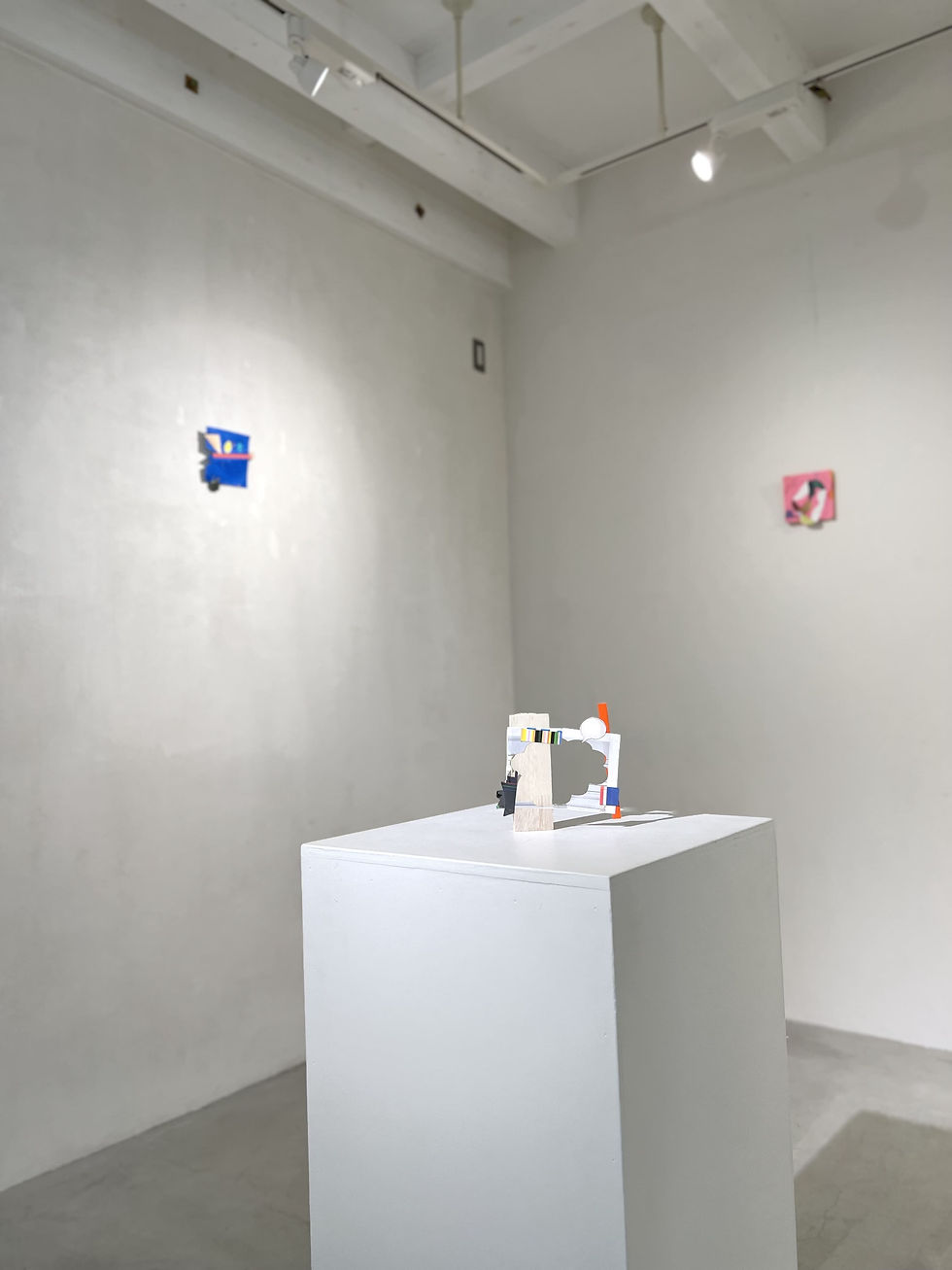 川端は、日常のなかで生まれる「あそび」や直感的な行為を軸に、色とかたちをすくいとり、作品をコラージュやオブジェとして作り上げてきました。